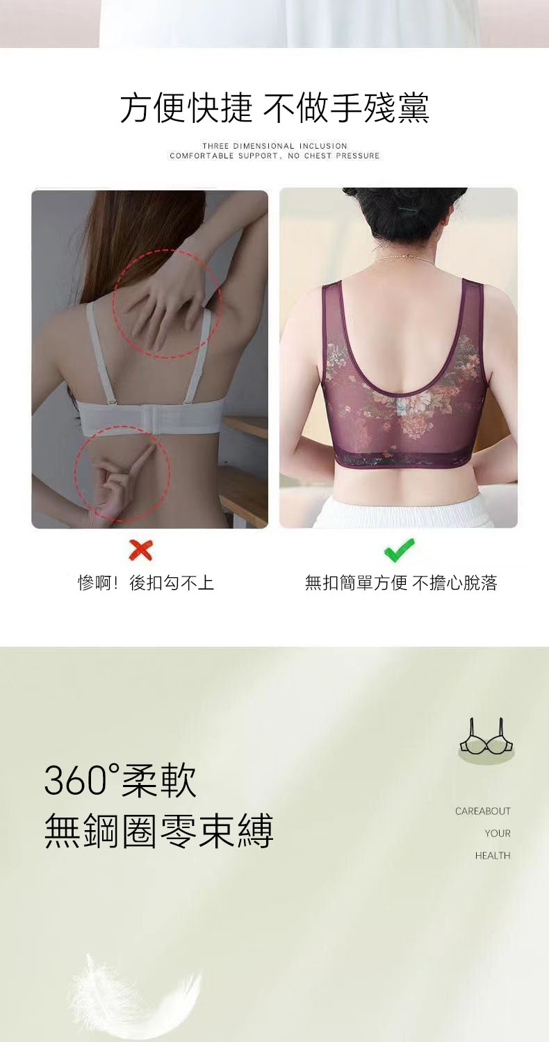 5分鐘前40-100公斤~中老年無痕内衣女文胸無鋼圈大胸顯小收副乳背心式睡眠文胸內衣 - 3件僅需NT$1128(均價NT$376)