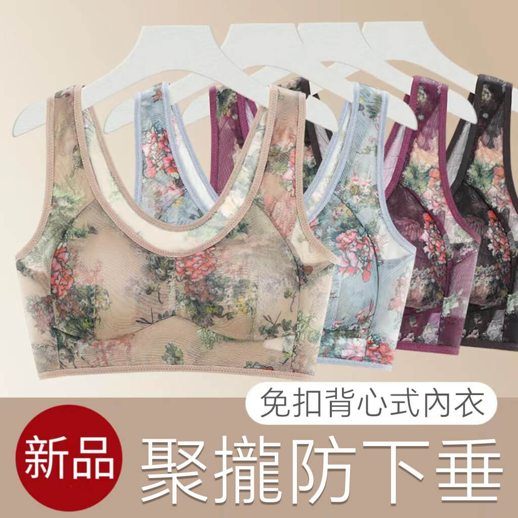 4分鐘前40-100公斤~中老年無痕内衣女文胸無鋼圈大胸顯小收副乳背心式睡眠文胸內衣 - 5件僅需NT$1298(均價NT$260)